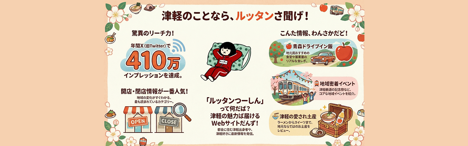 イベント情報 ■各イベントのご案内 【津軽鉄道開業95周年記念イベントオープニングセレモニー】 開催日:11月15日(土曜日) 時間:11:15~12:00 【開催場所:津軽五所川原駅ホーム】 全 ...