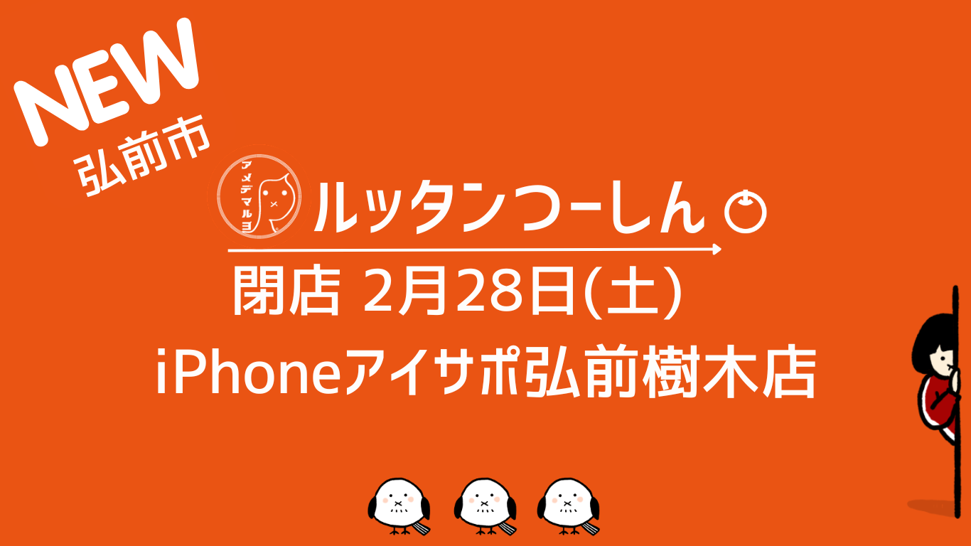 😐【閉店】令和8年2月28日(土)iPhoneアイサポ弘前樹木店(弘前市)