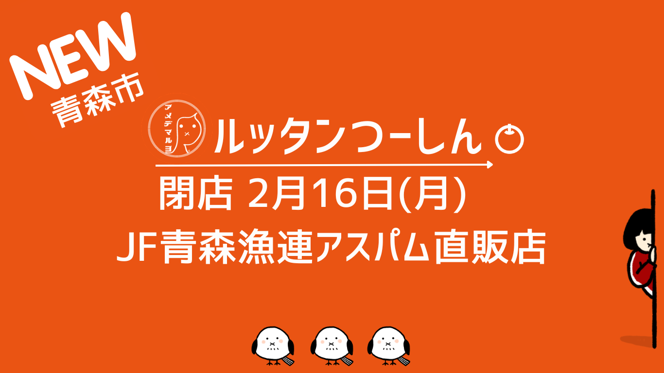 店舗情報 店舗名:JF青森漁連アスパム直販店 閉店日:2026年2月16日(月) 所在地: 〒030-0803 青森県青森市安方1丁目1−40 ホームページ:青森県観光物産館アスパム