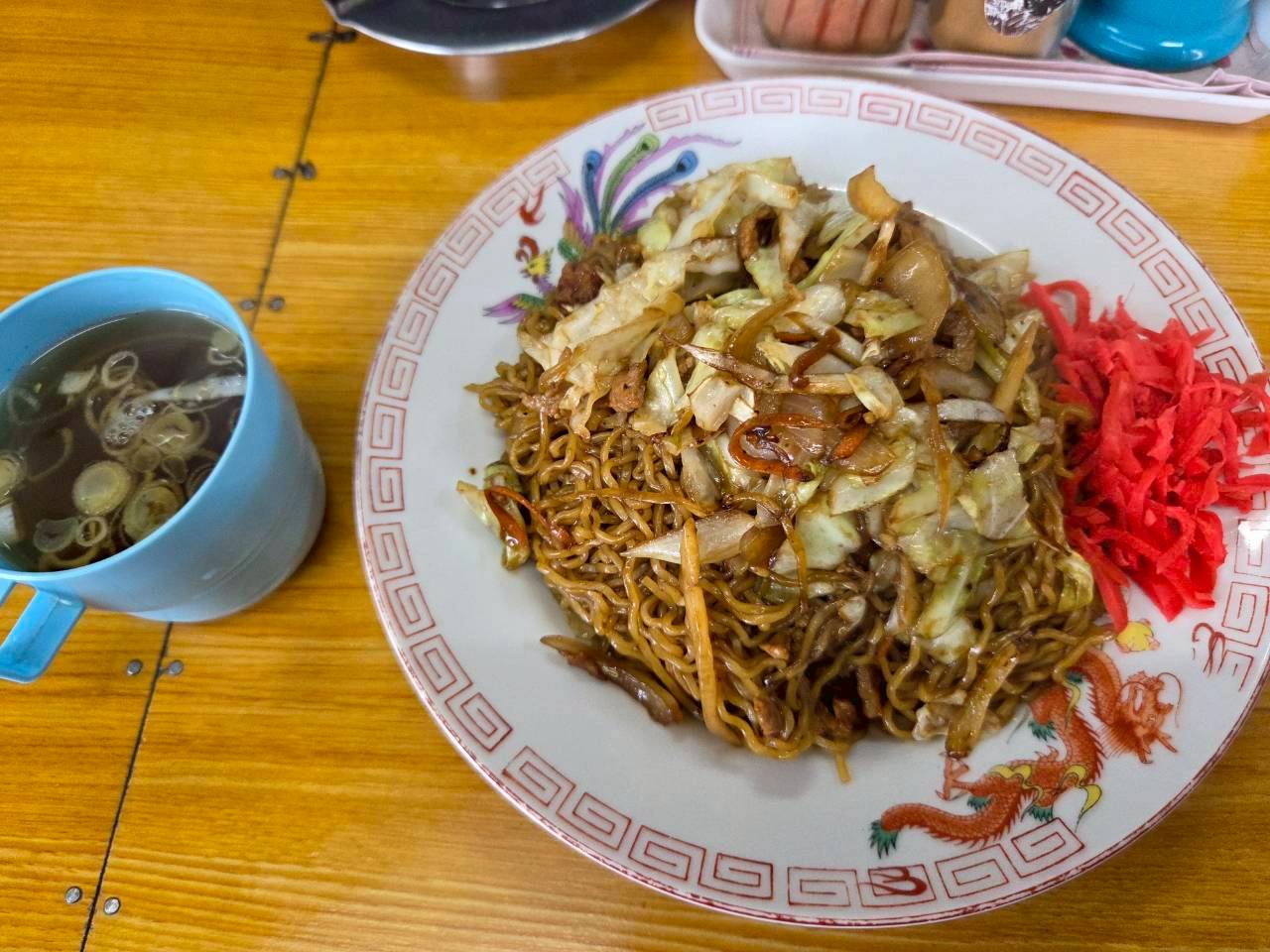 いつもラーメンばり食ってるしなぁ…と考えだ末、たまには違うもん挑戦すべと「焼きそば」注文。