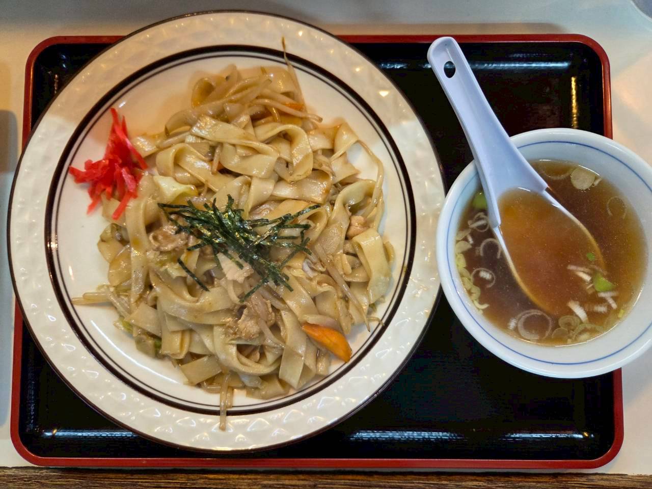 焼うどんが平たい!?スープが主役!?ルッタン、板柳で腹くっちまる!
