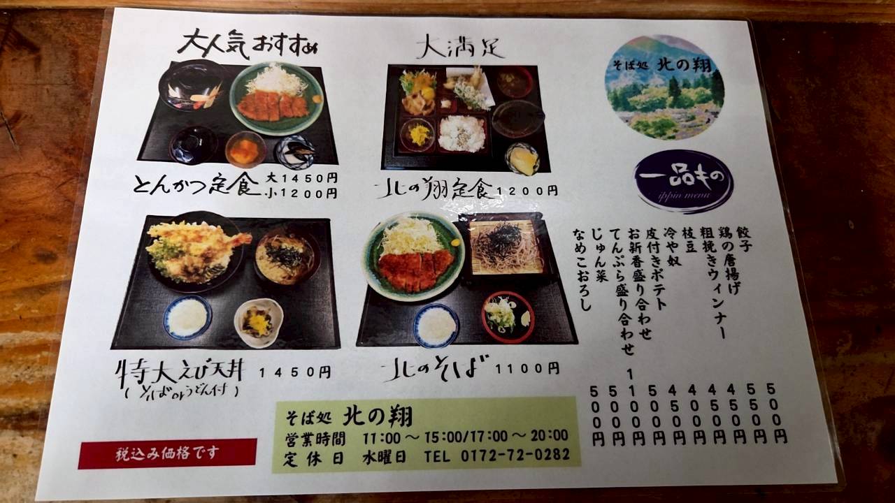 国道339号ばヒョロッと走って、弘前がら板柳方面さ向かってらと、板柳南小学校の近ぐさ 「そば処 北の翔」 って店見えてくるんず🏃♀️💨