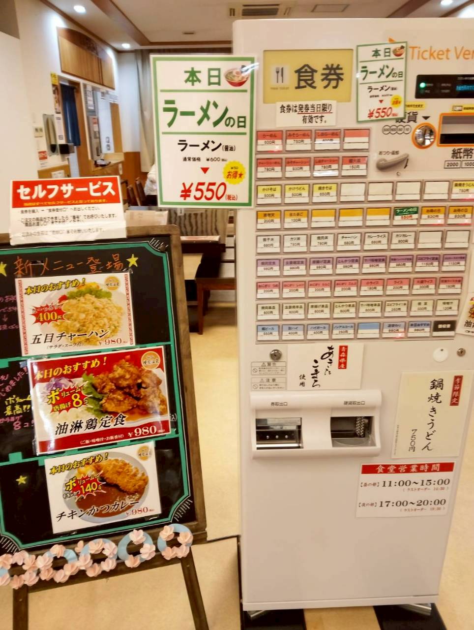 飯処の入口の券売機で食券買って、厨房さ出して