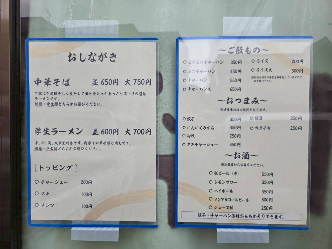 メニューは中華そばのほかにご飯もの、夜はおつまみもあるみてぇだよ🍺