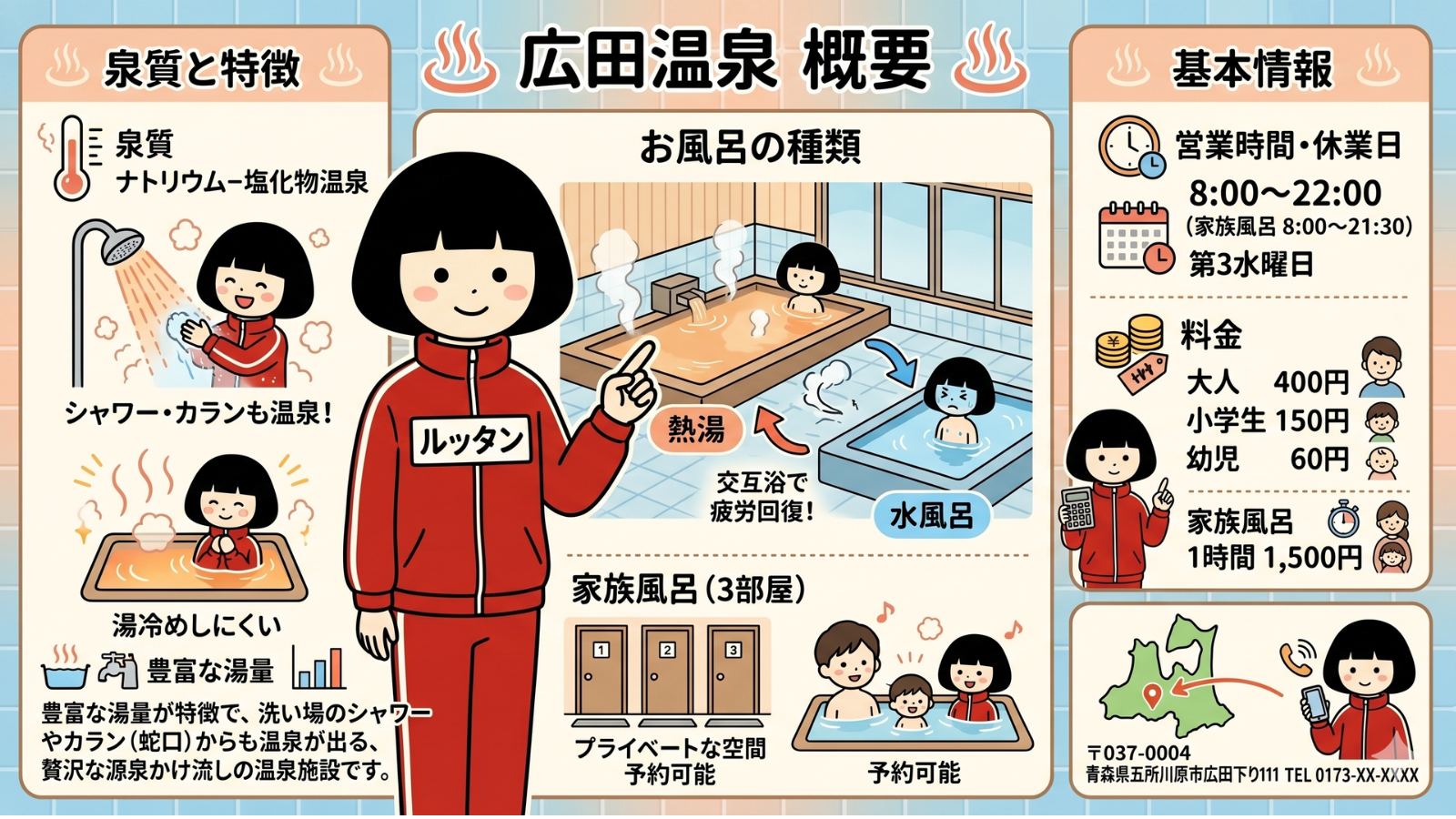 HOME > お知らせ > お知らせ イベント 温泉 ♨青森温泉道スタンプラリー🍎広田温泉_五所川原市 2026年4月18日 この投稿をInstagramで見る 青森の湯っこ協会(@aomorinoyukkokyoukai)がシェアした投稿 Post この記事を書いた人 最新記事 ルッタンつーしん 『ルッタンつーしん』は、津軽地方の魅力や情報を、都会に住む津軽出身者や津軽に関心を持つ方々に届けるwebサイトです。 ルッタンの独自目線で、地域の最新ニュースやイベント情報、観光スポットの紹介、地元企業の商品やサービスを取り上げ、津軽の魅力を発信します。 ライター編集長マエヤマ 2026/04/18♨青森温泉道スタンプラリー🍎広田温泉_五所川原市 2026/04/18😐【閉店】令和8年4月30日(木)美唄焼鳥・惣菜炎さくら野百貨店弘前店(弘前市) 2026/04/18🐮てやてやさんと!弘前市🍎薬王山正伝寺さ行ぐ〜 ルッタンつーしんの記事をもっと見る -お知らせ, イベント, 温泉 -ルッタン温泉企画, 五所川原市, 温泉, 青森温泉道
