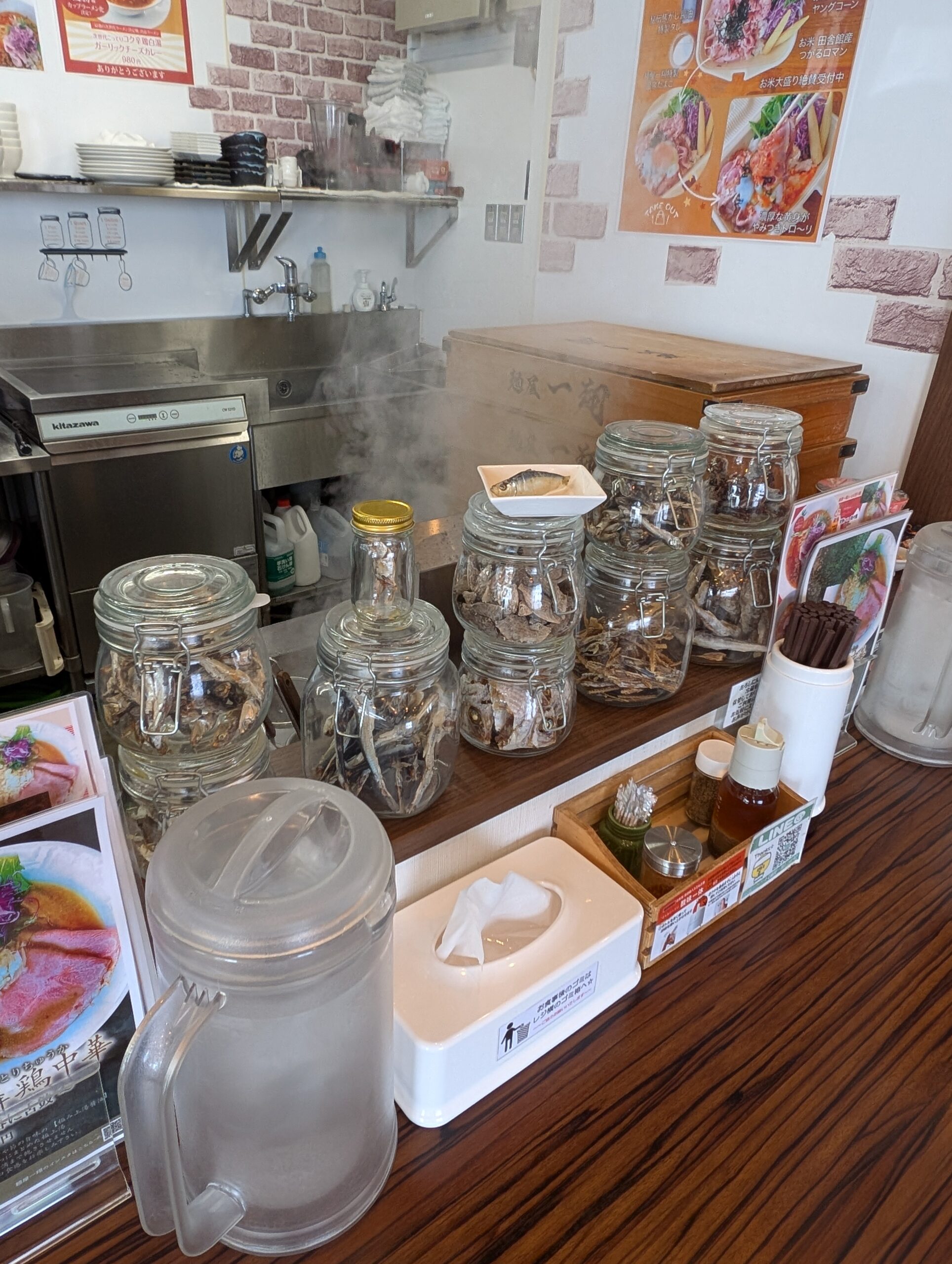 ルッタン「あど、猪木さんと馬場さんがな?いろんなコアな有名人の写真こ貼ってらね。」「煮干ドレどがもあるんだね」