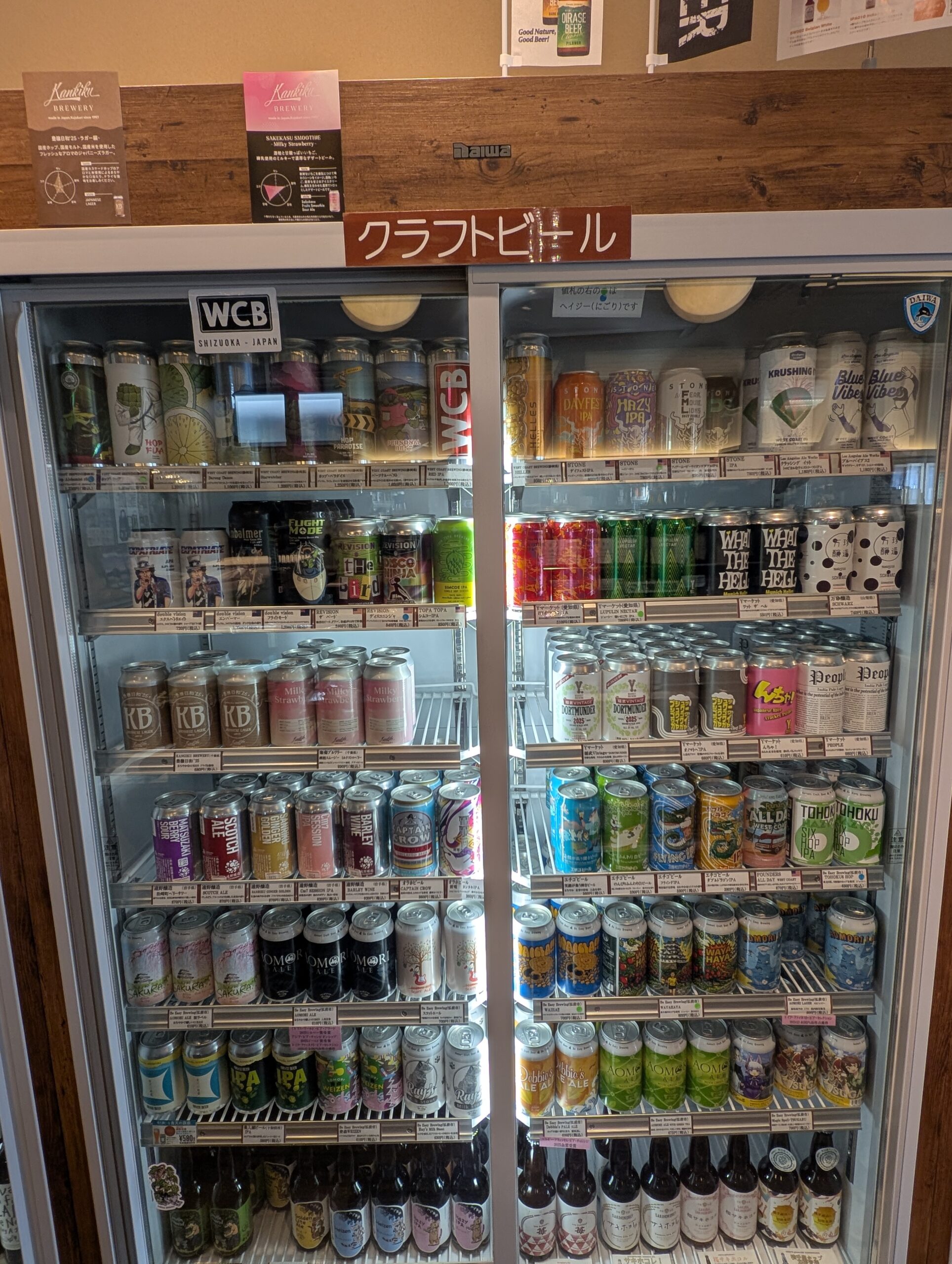 てやてや「クラフトビールもかなりあるな。商品、毎週とか毎月で入れ替えるらしい」